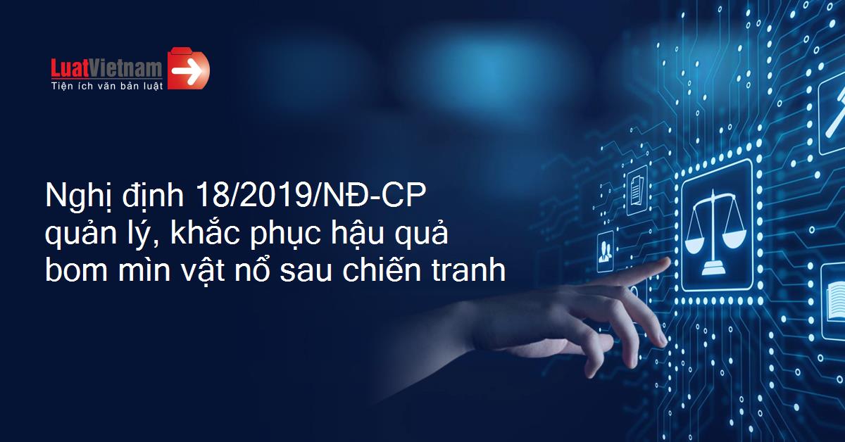 Ngày 01/02/2019, Chính phủ đã ban hành Nghị định 18/2019/NĐ-CP về việc quản lý và thực hiện hoạt động khắc phục hậu quả bom mìn vật nổ sau chiến tranh.