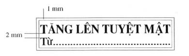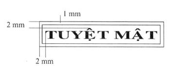 3. Mẫu dấu “TĂNG LÊN TUYỆT MẬT”: Hình chữ nhật, kích thước 55 mm x 13 mm, có hai đường viền xung quanh, khoảng cách giữa hai đường viền là 01 mm; hàng thứ nhất là dòng chữ “TĂNG LÊN TUYỆT MẬT”, trình bày bằng chữ in hoa, cỡ chữ 14, kiểu chữ Times new roman, đứng, đậm; hàng thứ hai là chữ “Từ: …” ở đầu hàng và các dấu chấm cho đến hết, trình bày bằng chữ thường, cỡ chữ 13, kiểu chữ Times new roman; khoảng cách giữa hàng chữ thứ nhất và hàng chữ thứ hai là 02 mm.