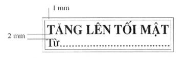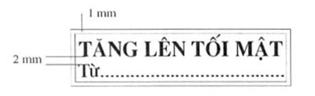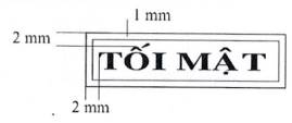 4. Mẫu dấu “TĂNG LÊN TỐI MẬT”: Hình chữ nhật, kích thước 50 mm x 13 mm, có hai đường viền xung quanh, khoảng cách giữa hai đường viền là 01 mm; hàng thứ nhất là dòng chữ “TĂNG LÊN TỐI MẬT”, trình bày bằng chữ in hoa, cỡ chữ 14, kiểu chữ Times new roman, đứng, đậm; hàng thứ hai là chữ “Từ: …..” ở đầu hàng và các dấu chấm cho đến hết, trình bày bằng chữ thường, cỡ chữ 13, kiểu chữ Times new roman; khoảng cách giữa hàng chữ thứ nhất và hàng chữ thứ hai là 02 mm.