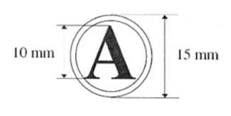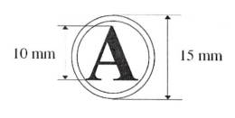 1. Mẫu dấu chữ “A”: Hình tròn, đường kính 15 mm, có hai đường viền xung quanh, khoảng cách giữa hai đường viền là 01 mm, chiều cao của chữ “A” là 10 mm, được trình bày ở giữa hình tròn, bằng chữ in hoa, cỡ chữ 40, kiểu chữ Times new roman, đứng, đậm. Mẫu dấu “A” được sử dụng để đóng bên ngoài bì đựng tài liệu bí mật nhà nước độ Tuyệt mật.