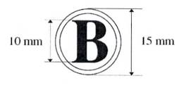 2. Mẫu dấu chữ “B”: Hình tròn, đường kính 15 mm, có hai đường viền xung quanh, khoảng cách giữa hai đường viền là 01 mm, chiều cao của chữ “B” là 10 mm, được trình bày ở giữa hình tròn, bằng chữ in hoa, cỡ chữ 40, kiểu chữ Times new roman, đứng, đậm. Mẫu dấu “B” được sử dụng để đóng bên ngoài bì đựng tài liệu bí mật nhà nước độ Tối mật.