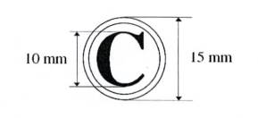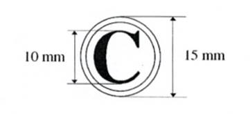 3. Mẫu dấu chữ “C”: Hình tròn, đường kính 15 mm, có hai đường viền xung quanh, khoảng cách giữa hai đường viền là 01 mm, chiều cao của chữ “C” là 10 mm, được trình bày ở giữa hình tròn, bằng chữ in hoa, cỡ chữ 40, kiểu chữ Times new roman, đứng, đậm. Mẫu dấu “C” được sử dụng để đóng bên ngoài bì đựng tài liệu bí mật nhà nước độ Mật.