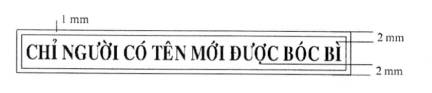 Mẫu dấu “CHỈ NGƯỜI CÓ TÊN MỚI ĐƯỢC BÓC BÌ”: Hình chữ nhật, kích thước 70 mm x 9 mm, có hai đường viền xung quanh, khoảng cách giữa hai đường viền là 01 mm, bên trong là hàng chữ “CHỈ NGƯỜI CÓ TÊN MỚI ĐƯỢC BÓC BÌ” trình bày bằng chữ in hoa, cỡ chữ 14, kiểu chữ Times New Roman, đứng, đậm, cách đều đường viền bên ngoài 02 mm.