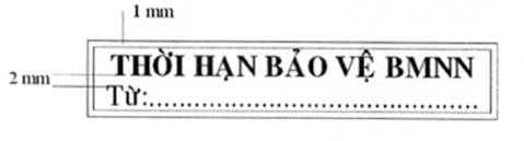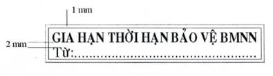 Mẫu dấu “GIA HẠN THỜI HẠN BẢO VỆ BÍ MẬT NHÀ NƯỚC”: Hình chữ nhật, kích thước 70 mm x 12 mm, có hai đường viền xung quanh, khoảng cách giữa hai đường viền là 01 mm; hàng thứ nhất là dòng chữ “GIA HẠN THỜI HẠN BẢO VỆ BMNN”, trình bày bằng chữ in hoa, cỡ chữ 13, kiểu chữ Times new roman, đứng, đậm; hàng thứ hai là dòng chữ “Từ:...”, trình bày bằng chữ thường, cỡ chữ 13, kiểu chữ Times new roman; khoảng cách giữa hàng chữ thứ nhất và hàng chữ thứ hai là 02 mm.