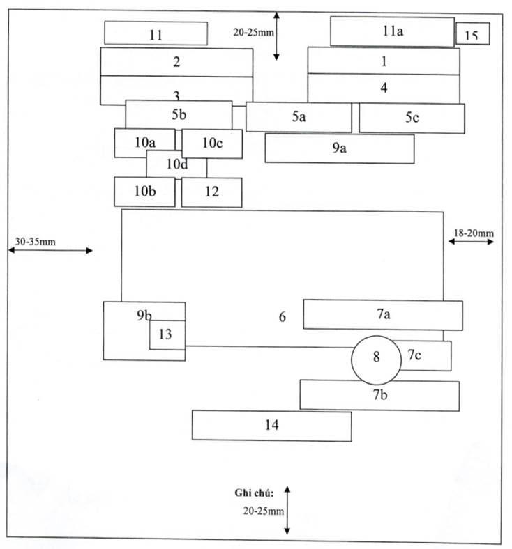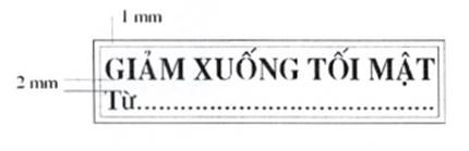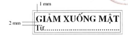 2. Mẫu dấu “GIẢM XUỐNG MẬT”: Hình chữ nhật, kích thước 50 mm x 13 mm, có hai đường viền xung quanh, khoảng cách giữa hai đường viền là 01 mm; hàng thứ nhất là dòng chữ “GIẢM XUỐNG MẬT”, trình bày bằng chữ in hoa, cỡ chữ 14, kiểu chữ Times new roman, đứng, đậm; hàng thứ hai là chữ “Từ:…” ở đầu hàng và các dấu chấm cho đến hết, trình bày bằng chữ thường, cỡ chữ 13, kiểu chữ Times new roman; khoảng cách giữa hàng chữ thứ nhất và hàng chữ thứ hai là 02 mm.