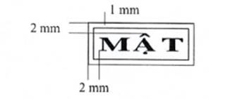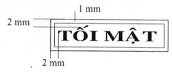 1. Mẫu dấu “GIẢM XUỐNG TỐI MẬT”: Hình chữ nhật, kích thước 55 mm x 13 mm, có hai đường viền xung quanh, khoảng cách giữa hai đường viền là 01 mm; hàng thứ nhất là dòng chữ “GIẢM XUỐNG TỐI MẬT”, trình bày bằng chữ in hoa, cỡ chữ 14, kiểu chữ Times New Roman, đứng, đậm; hàng thứ hai là chữ “Từ:….” ở đầu hàng và các dấu chấm cho đến hết, trình bày bằng chữ thường, cỡ chữ 13, kiểu chữ Times new roman; khoảng cách giữa hàng chữ thứ nhất và hàng chữ thứ hai là 02 mm.