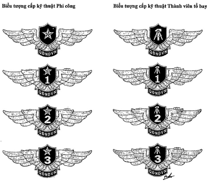 1. Biểu tượng cấp kỹ thuật phi công, thành viên tổ bay thực hiện theo Điều lệnh quản lý bộ đội Quân đội nhân dân Việt Nam và quy định của Bộ Quốc phòng.