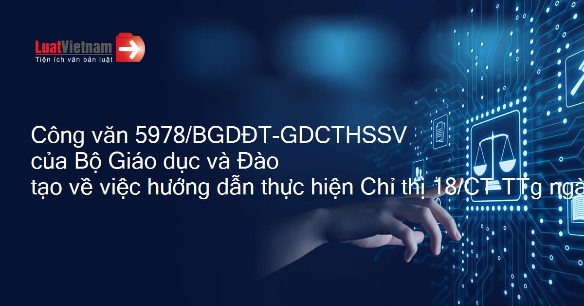 Công văn 5978/BGDĐT-GDCTHSSV của Bộ Giáo dục và Đào tạo về việc hướng dẫn thực hiện Chỉ thị 18/CT-TTg ngày 16/5/2017 của Thủ tướng Chính phủ