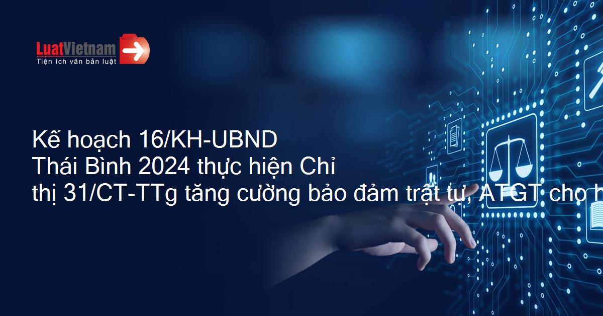 Kế hoạch 16/KH-UBND của Ủy ban nhân dân tỉnh Thái Bình thực hiện Chỉ thị 31/CT-TTg ngày 21/12/2023 của Thủ tướng Chính phủ về việc tăng cường công tác bảo đảm trật tự, an toàn giao thông cho lứa tuổi học sinh trong tình hình mới