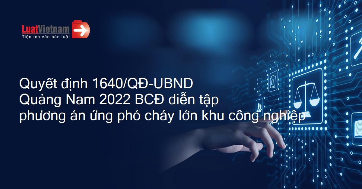 Quyết định 1640/QĐ-UBND của Ủy ban nhân dân tỉnh Quảng Nam về việc thành lập Ban Chỉ đạo diễn tập phương án ứng phó thảm họa cháy lớn khu công nghiệp, kết hợp diễn tập chữa cháy và cứu nạn, cứu hộ có huy động nhiều lực lượng, phương tiện tham gia, quy mô cấp tỉnh năm 2022