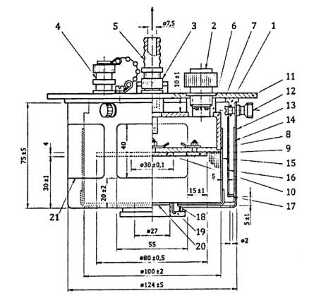Cấu trúc cơ học của Buồng đo ion hóa (MIC) được thể hiện trong Hình L.1. Các kích thước quan trọng về mặt chức năng được đánh dấu bằng dung sai của chúng. Các chi tiết khác về các bộ phận khác nhau của thiết bị được đưa ra trong Bảng L.1.