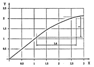 Ví dụ, hãy xem xét một đầu báo cháy khói có đặc tính truyền như trong Hình N.4, trong đó cả hai trục được biểu thị dưới dạng giá trị ngưỡng phản ứng Ath,u. Tính phi tuyến của đặc tính làm cho độ nhạy hiệu dụng bị giảm ở các giá trị kích thích cao hơn. Trong trường hợp này, mức hiệu chỉnh phải được giới hạn ở mức nhỏ hơn 1,1 x Ath,u, vì để tạo ra sự thay đổi về đầu ra Ath,u, kích thích phải tăng từ 1,1 xAth,u lên 2,7 xAth,u. Việc giảm độ nhạy theo hệ số 1,6 là mức tối đa cho phép theo 4,29.
