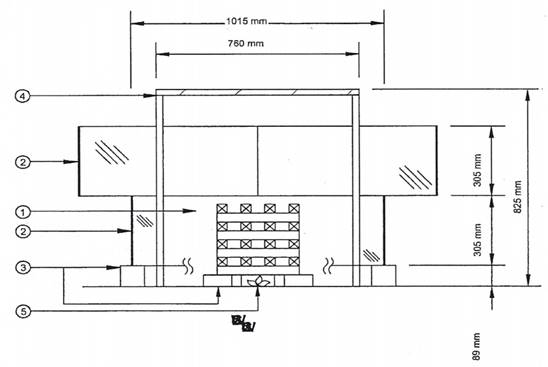 Một tấm chắn nhiên liệu gồm một khung kim loại với thép tấm ở trên và hai bên phải được lắp xung quanh khay nhiên liệu như được biểu thị trong Hình 3. Tấm chắn nhiên liệu phải rộng (380 ± 5) mm, cao (850 ± 15) mm và sâu (610 ±10) mm. Các cạnh rộng 610 mm, cao 850 mm và đỉnh (610 x 380) mm là thép tấm. Hai cạnh còn lại và đáy sẽ được mở.