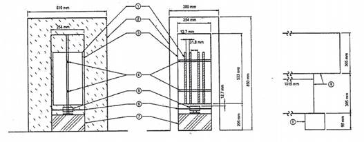 6.3.1.2Khay có hình vuông với kích thước chiều dài và chiều rộng bên trong ít nhất 482 mm, có diện tích ít nhất là 0,23 m2 và chiều sâu bên trong ít nhất là 102 mm. Khay phải được làm bằng thép có độ dày thành tối thiểu là 6,4 mm, với các mối hàn kín để không rò rỉ chất lỏng và có góc với kích thước danh nghĩa (38 x 38) mm dày khoảng 4,8 mm, để gia cố cạnh trên. Góc gia cố phải liên tục xung quanh chu vi của khay và tạo thành một cạnh quay ra ngang bằng với cạnh trên của khay. Bề mặt cạnh trên được chế tạo với chiều rộng khoảng 44 mm. Góc gia cố phải được hàn liên tục phía mặt ngoài của khay ở cạnh trên và hàn dính ở mép chân dưới của góc.