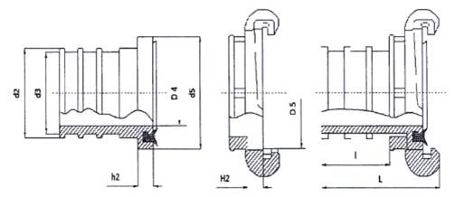 6.1.2. Cấu tạo cơ bản của các loại đầu nối ngàm và các kích thước tương ứng phải phù hợp với thông số trong Hình 1 đến Hình 9 và trong Bảng 2 đến Bảng 11.