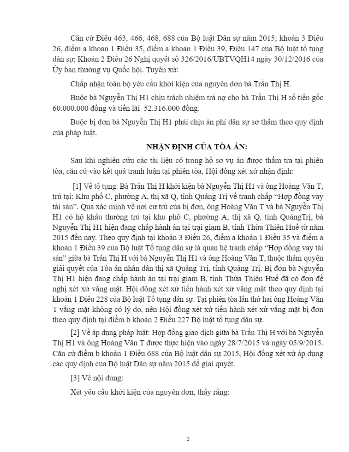 | Thông tin về vụ/việc: | Tranh chấp hợp đồng vay tài sản |