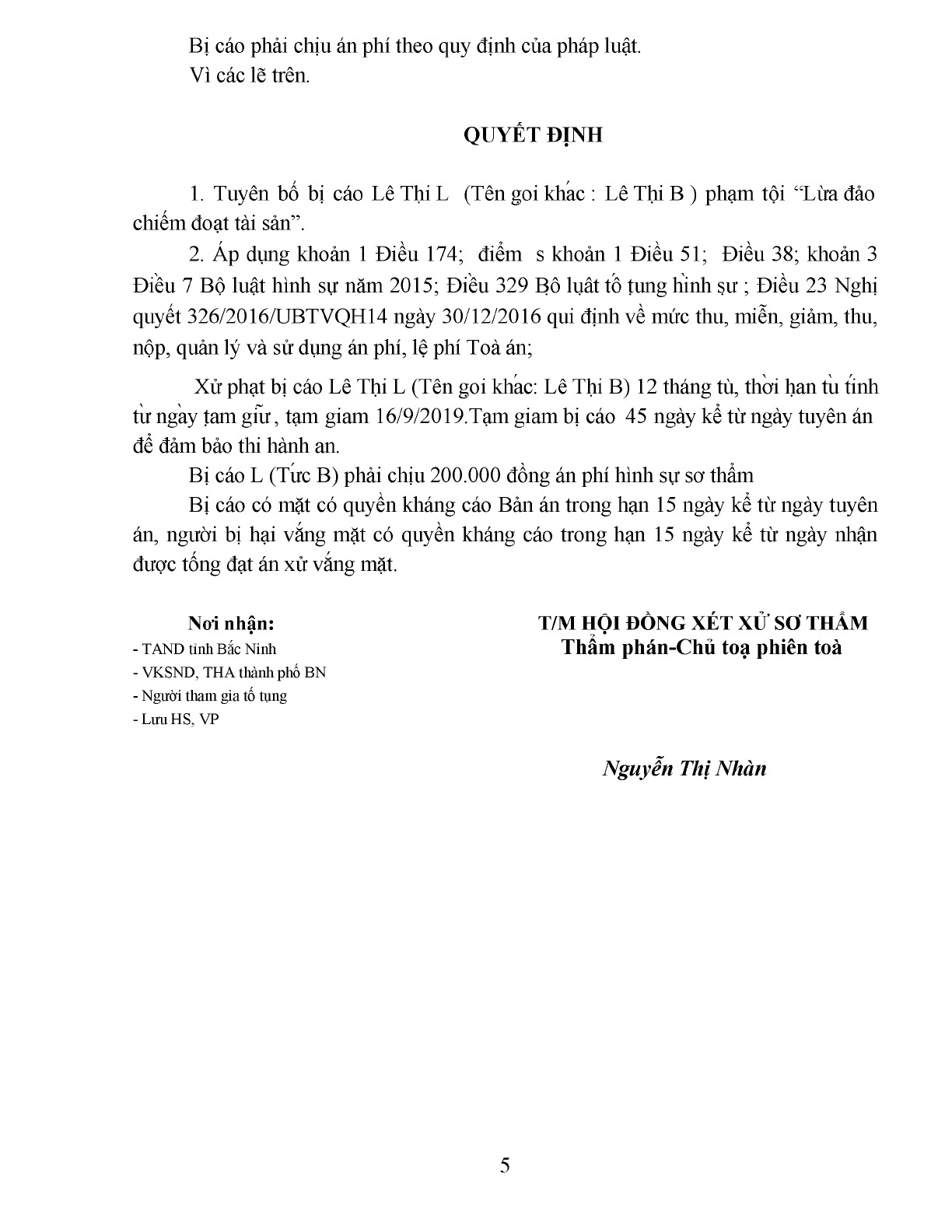 Bản án số 05/2019/HSST