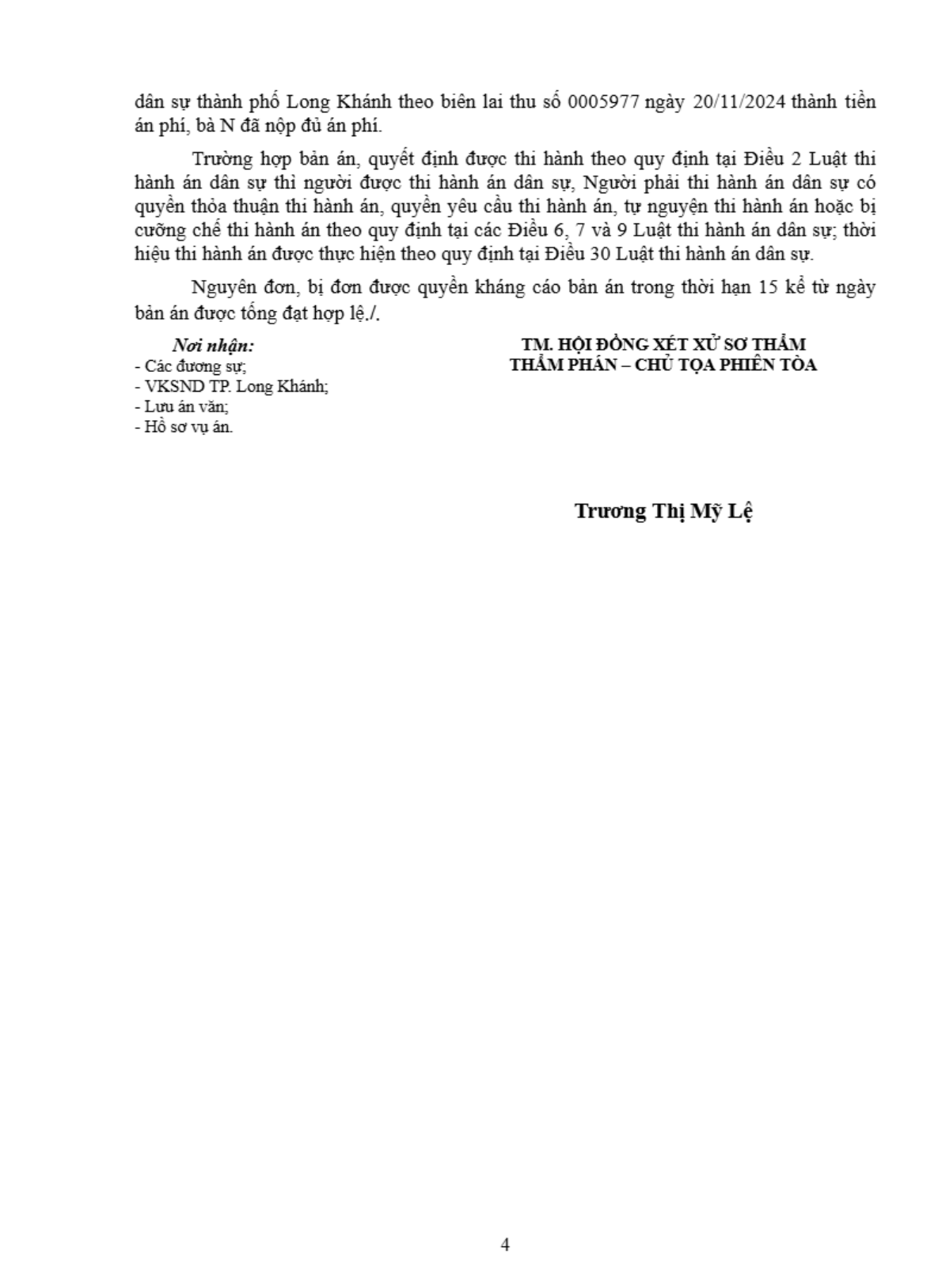 | Tòa án xét xử: | TAND TX. Long Khánh (TAND tỉnh Đồng Nai) |