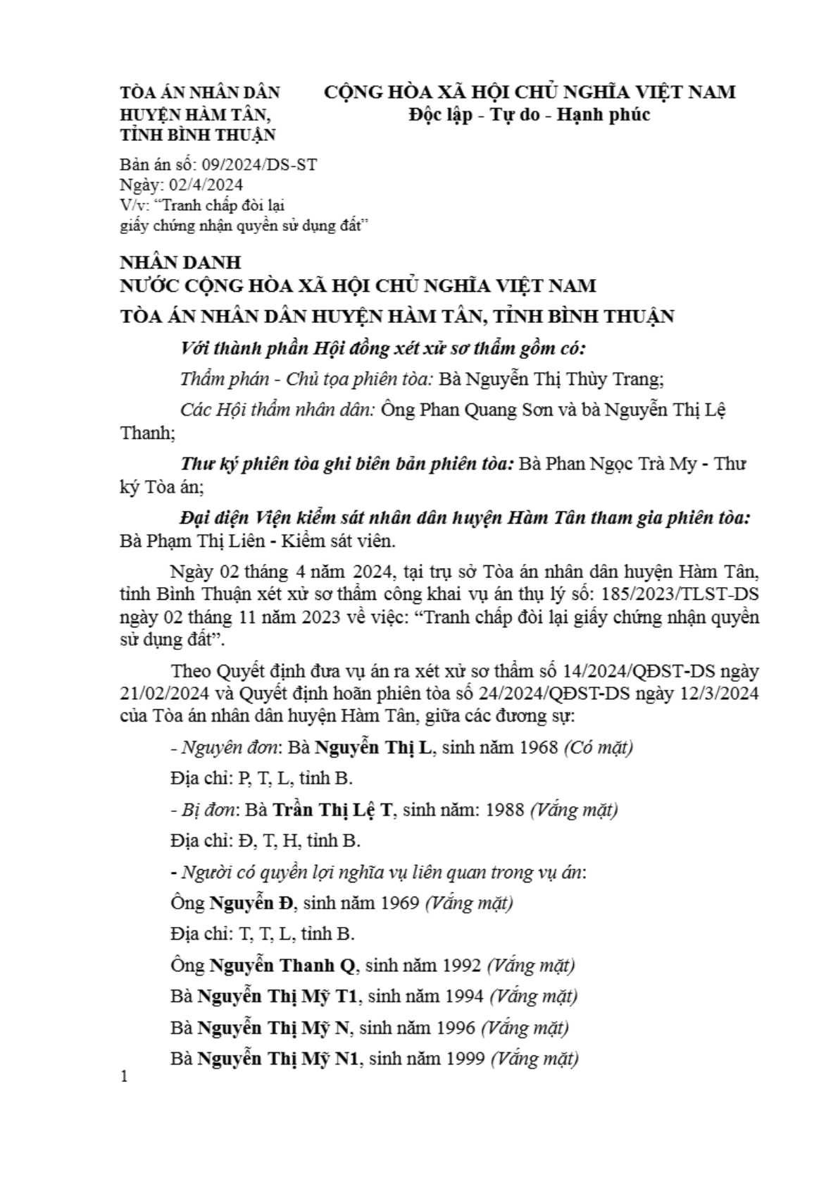 | Tòa án xét xử: | TAND huyện Hàm Tân (TAND tỉnh Bình Thuận) |