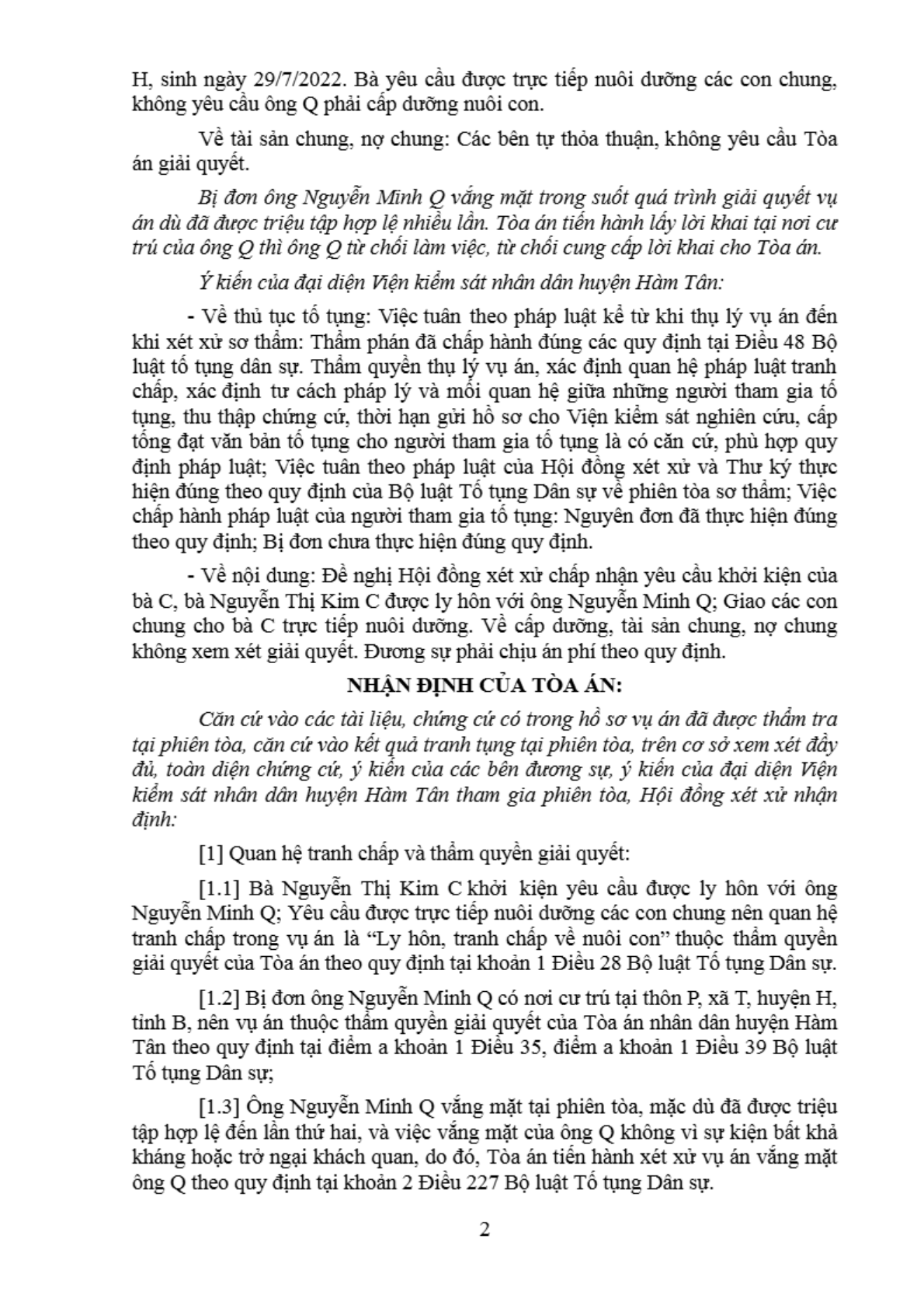 | Tòa án xét xử: | TAND huyện Hàm Tân (TAND tỉnh Bình Thuận) |