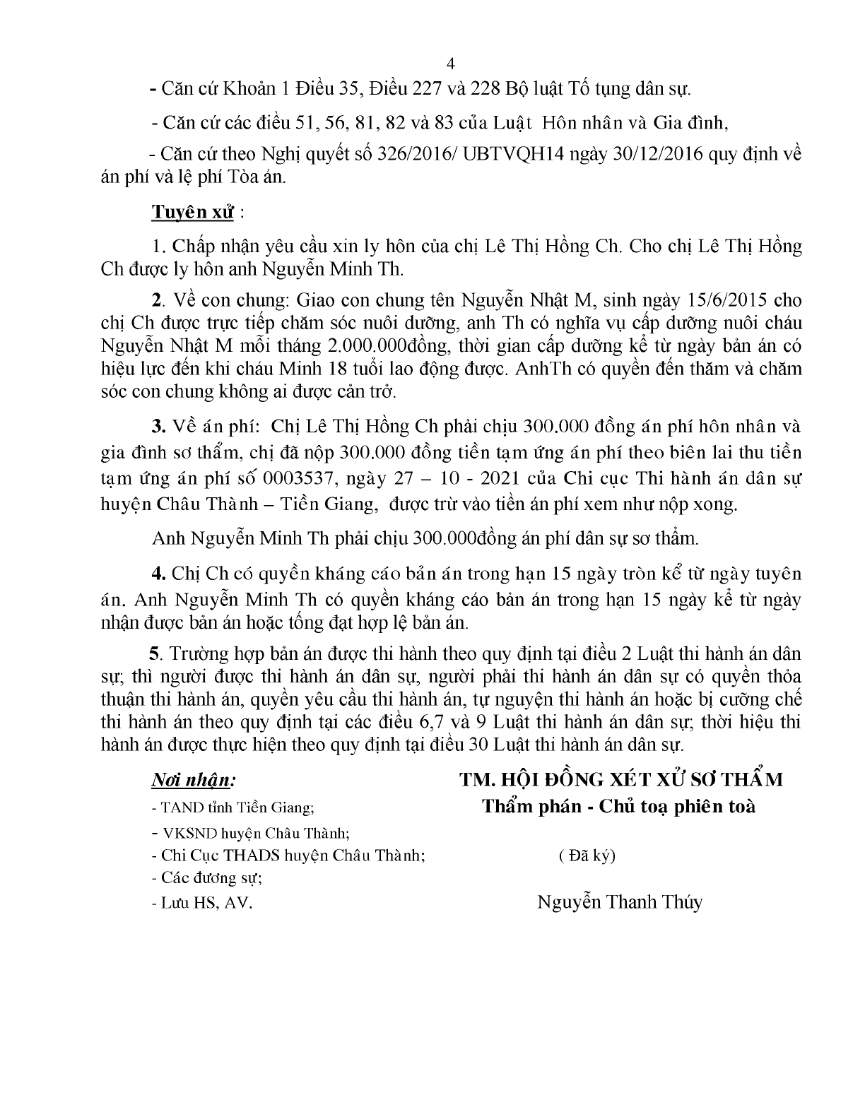 | Tòa án xét xử: | TAND huyện Châu Thành (TAND tỉnh Tiền Giang) |