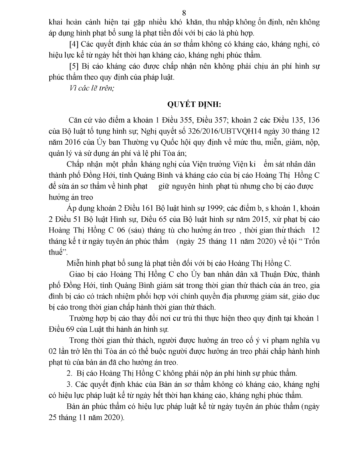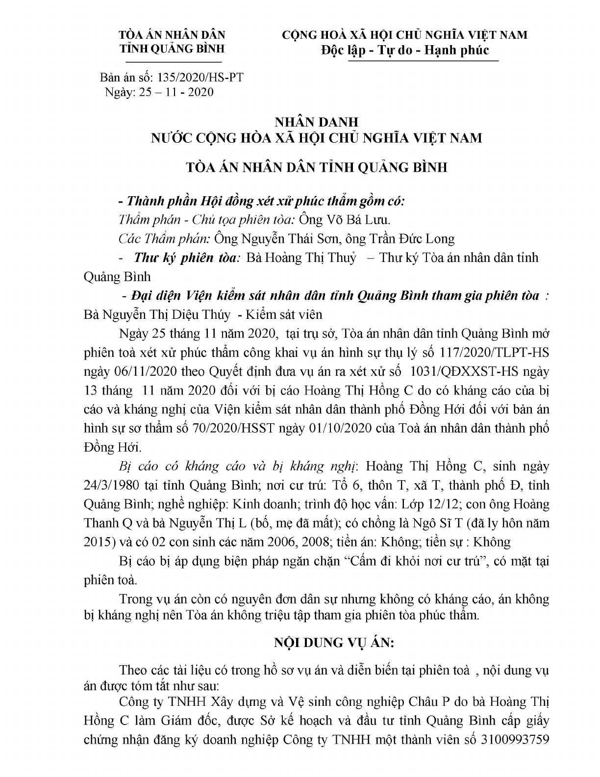 | Tên Bản án: | Bản án số 135/2020/HS-PT ngày 25/11/2020 của TAND tỉnh Quảng Bình về tội trốn thuế |