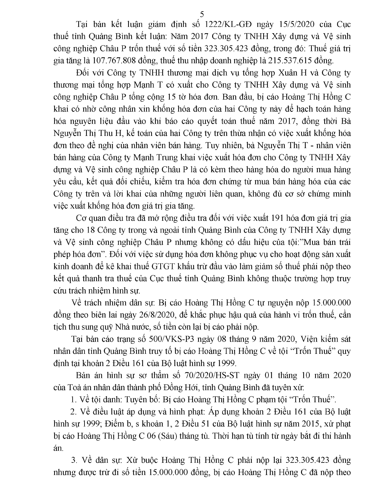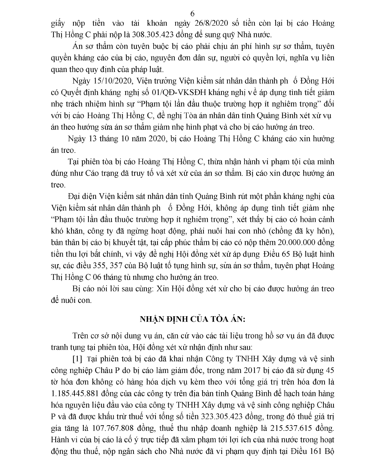 Bản án số 135/2020/HS-PT ngày 25/11/2020 của TAND tỉnh Quảng Bình về tội trốn thuế