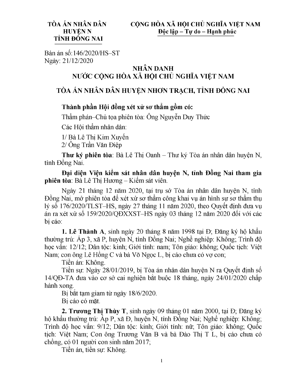 | Số hiệu: | 146/2020/HS-ST |