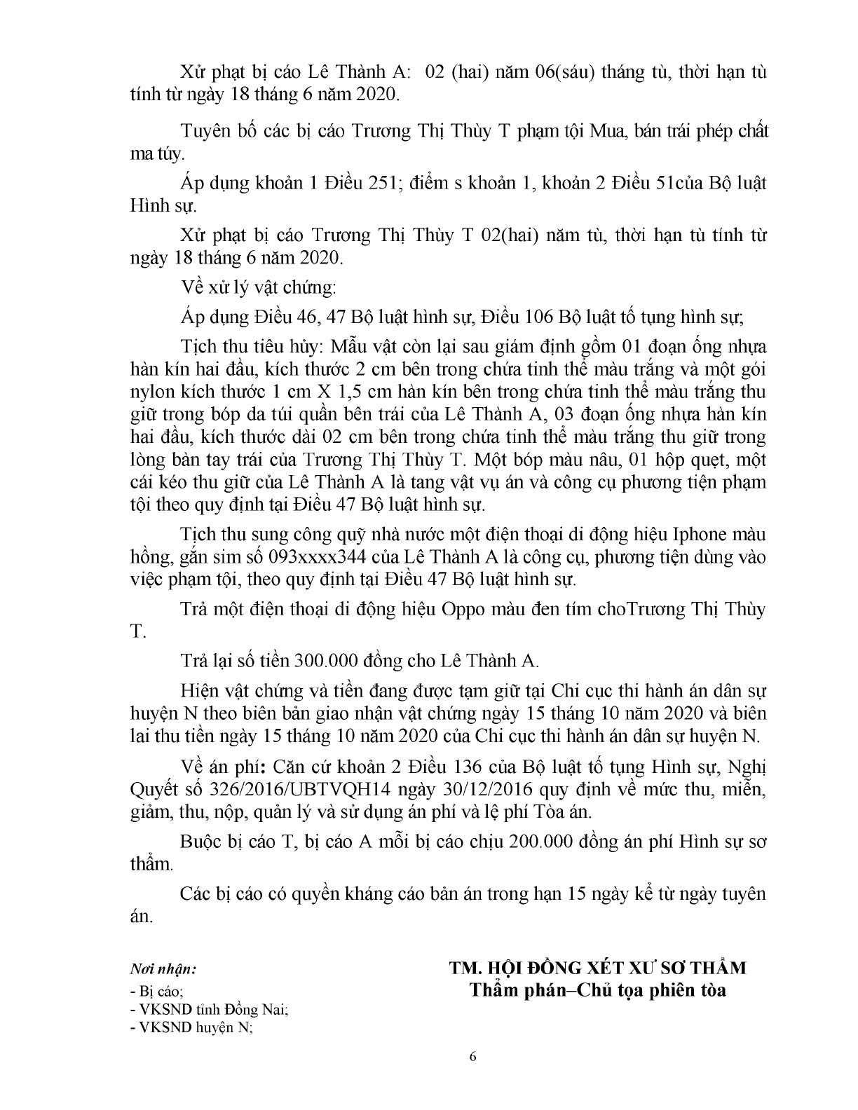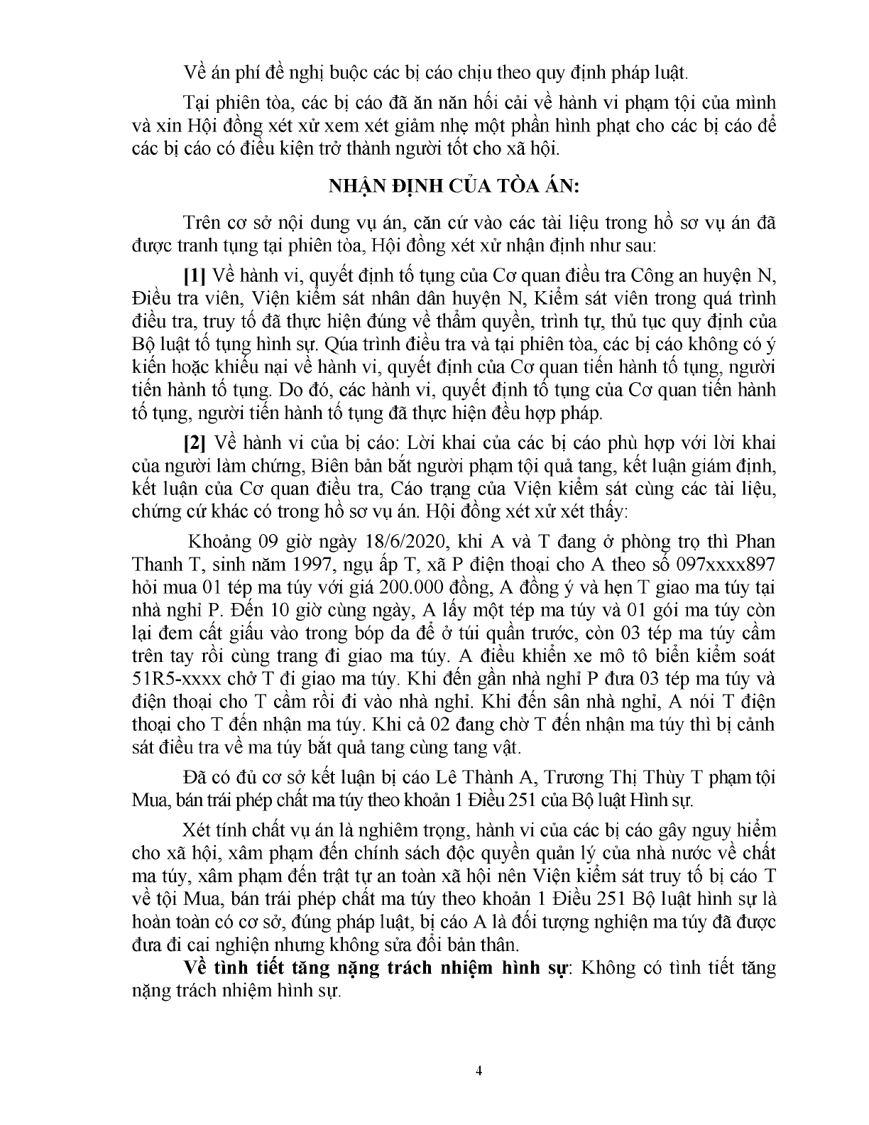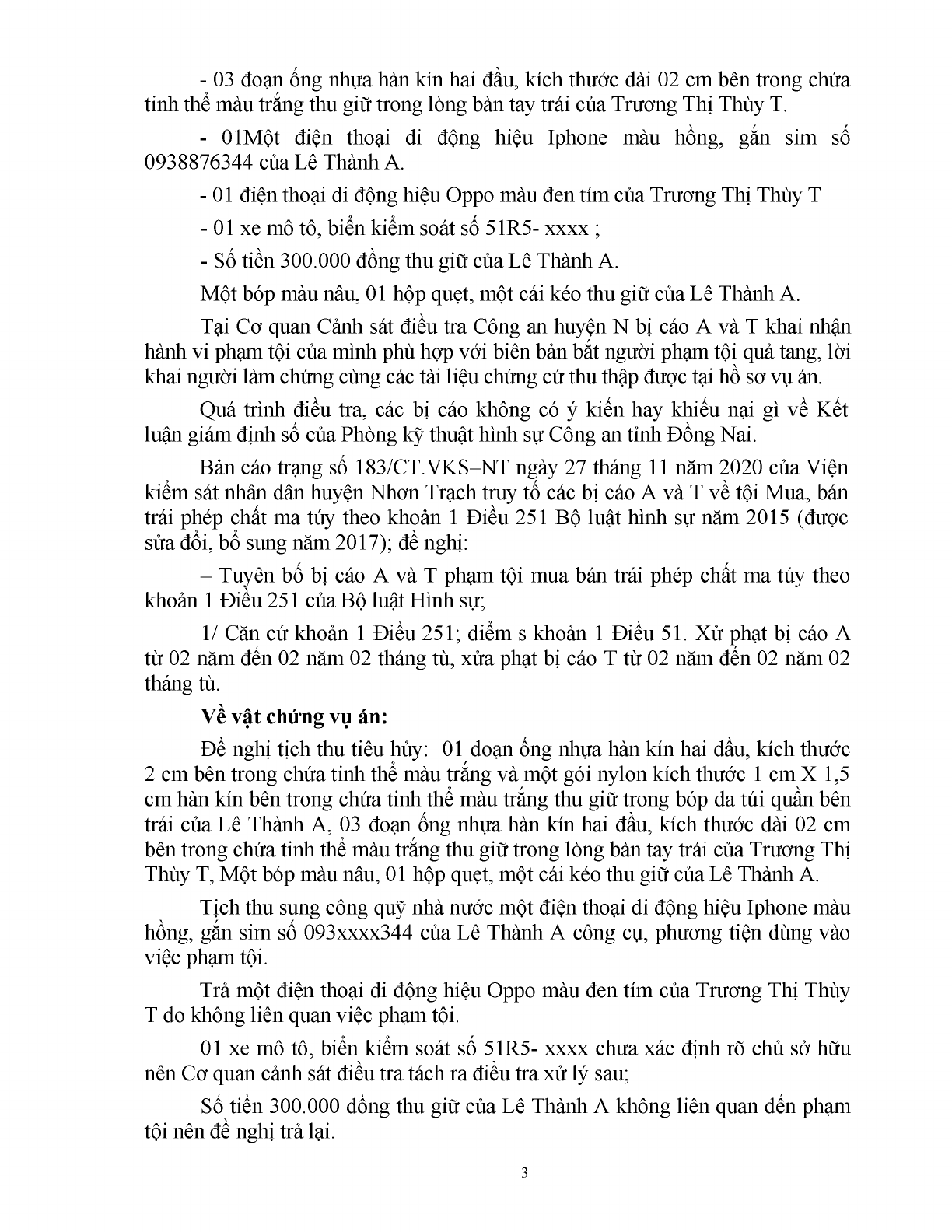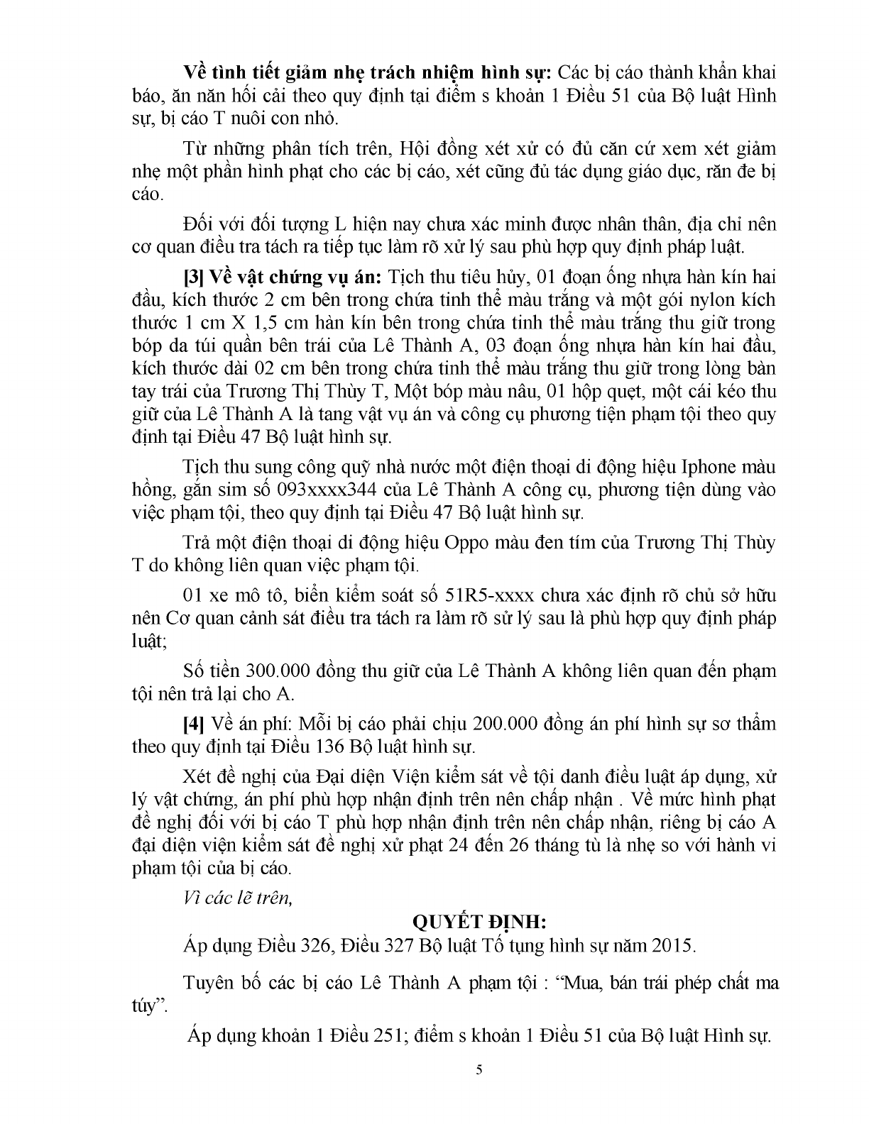 | Tội danh: | 251.Tội mua bán trái phép chất ma túy (Luật sửa đổi, bổ sung một số điều của BLHS năm 2015) |
