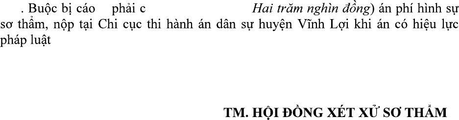 | Tòa án xét xử: | TAND huyện Vĩnh Lợi (TAND tỉnh Bạc Liêu) |