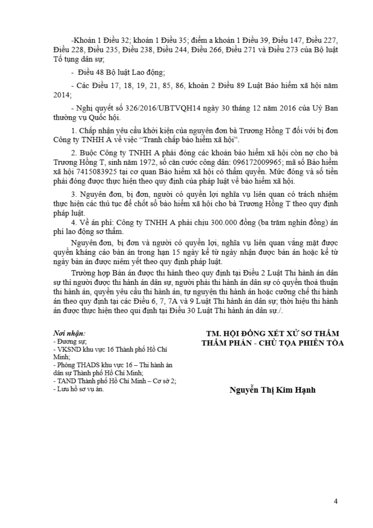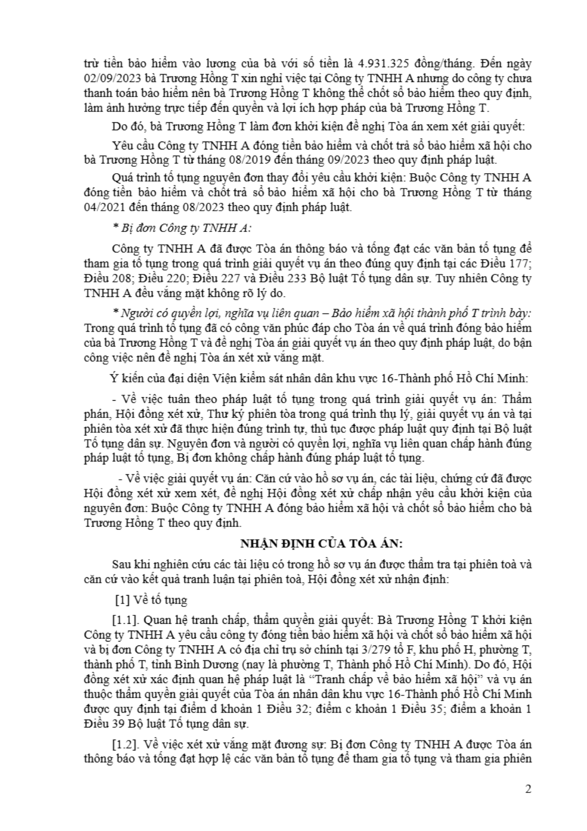 | Tên Bản án: | Bản án số 17/2025/LĐ-ST ngày 25/07/2025 của Tòa án nhân dân khu vực 16 - Hồ Chí Minh, TP. Hồ Chí Minh về tranh chấp về bảo hiểm xã hội, bảo hiểm y tế, bảo hiểm thất nghiệp, bảo hiểm tai nạn lao động, bệnh nghề nghiệp |