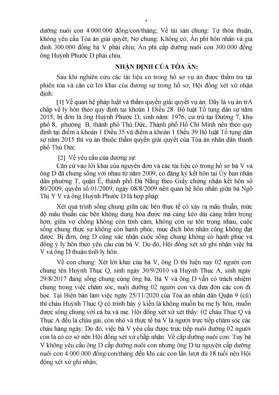 | Tòa án xét xử: | TAND Q. Thủ Đức (TAND TP. Hồ Chí Minh) |
