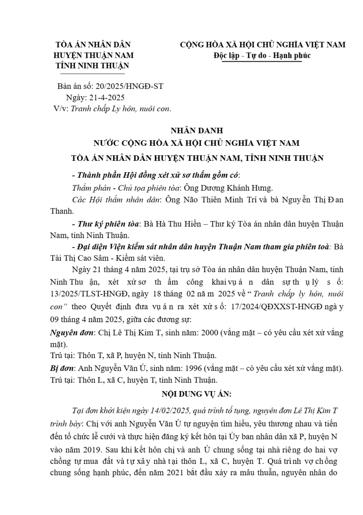 | Tòa án xét xử: | TAND huyện Thuận Nam (TAND tỉnh Ninh Thuận) |