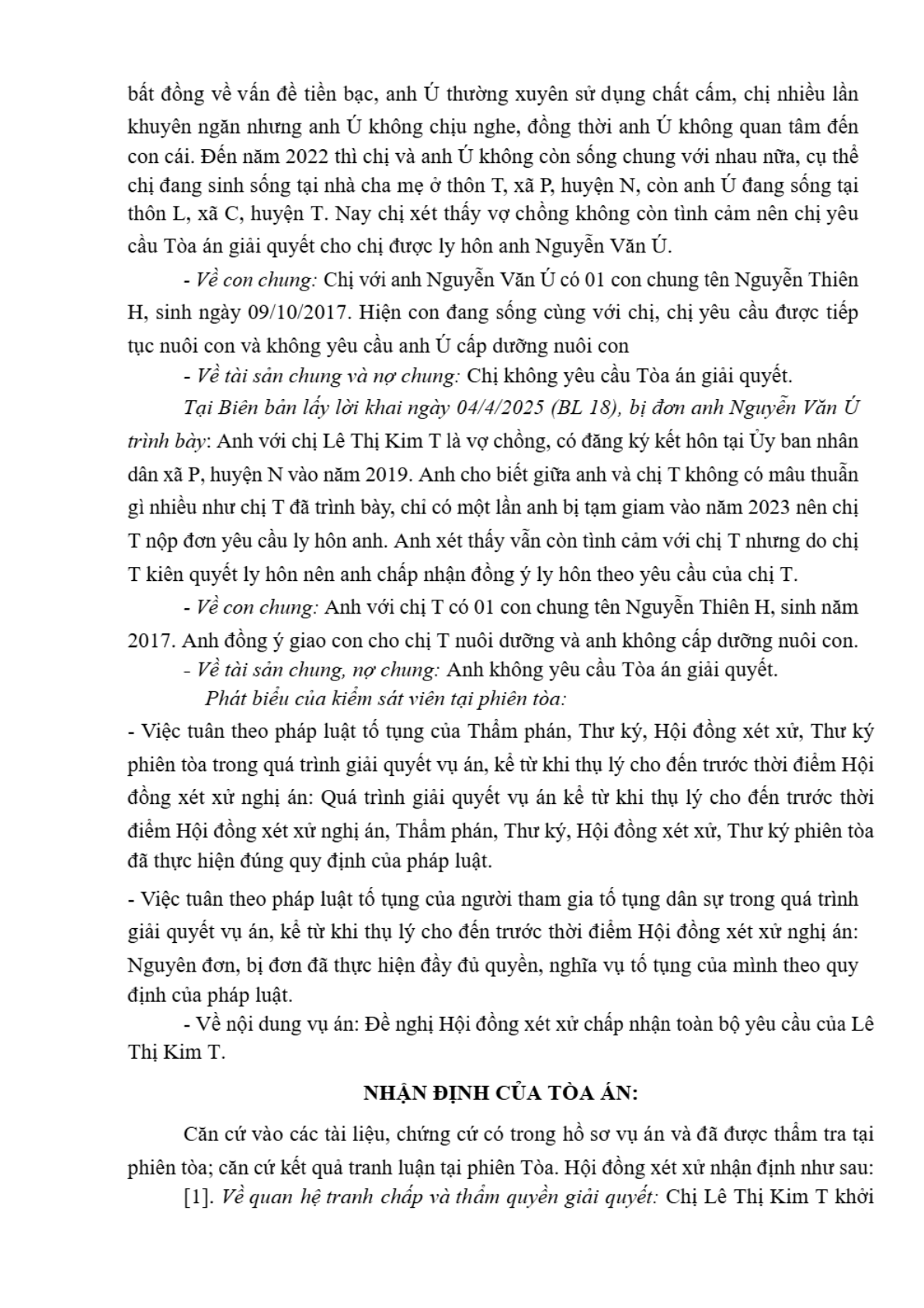 Bản án số 20/2025/HNGĐ-ST ngày 21/04/2025 của TAND huyện Thuận Nam, tỉnh Ninh Thuận về vụ án ly hôn về mâu thuẫn gia đình