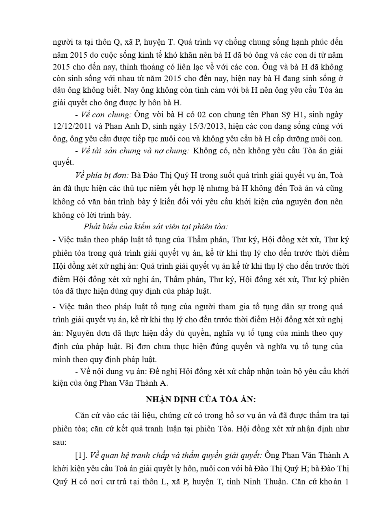 | Thông tin về vụ/việc: | Cho ly hôn |