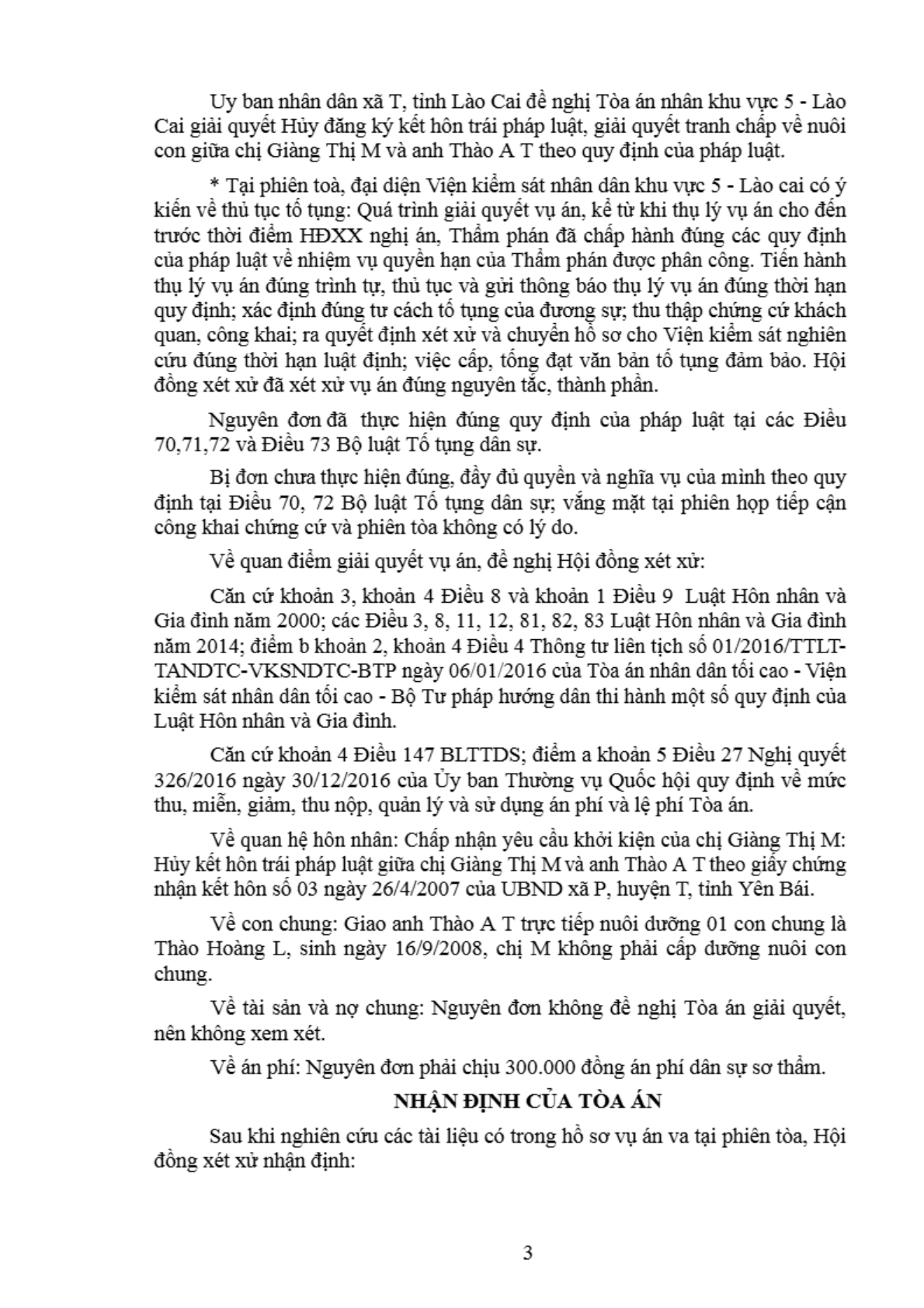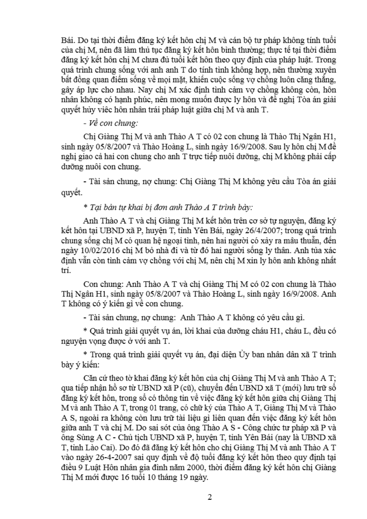 | Thông tin về vụ/việc: | Hủy kết hôn trái pháp luật giữa chị Giàng Thị M và anh Thào A T |