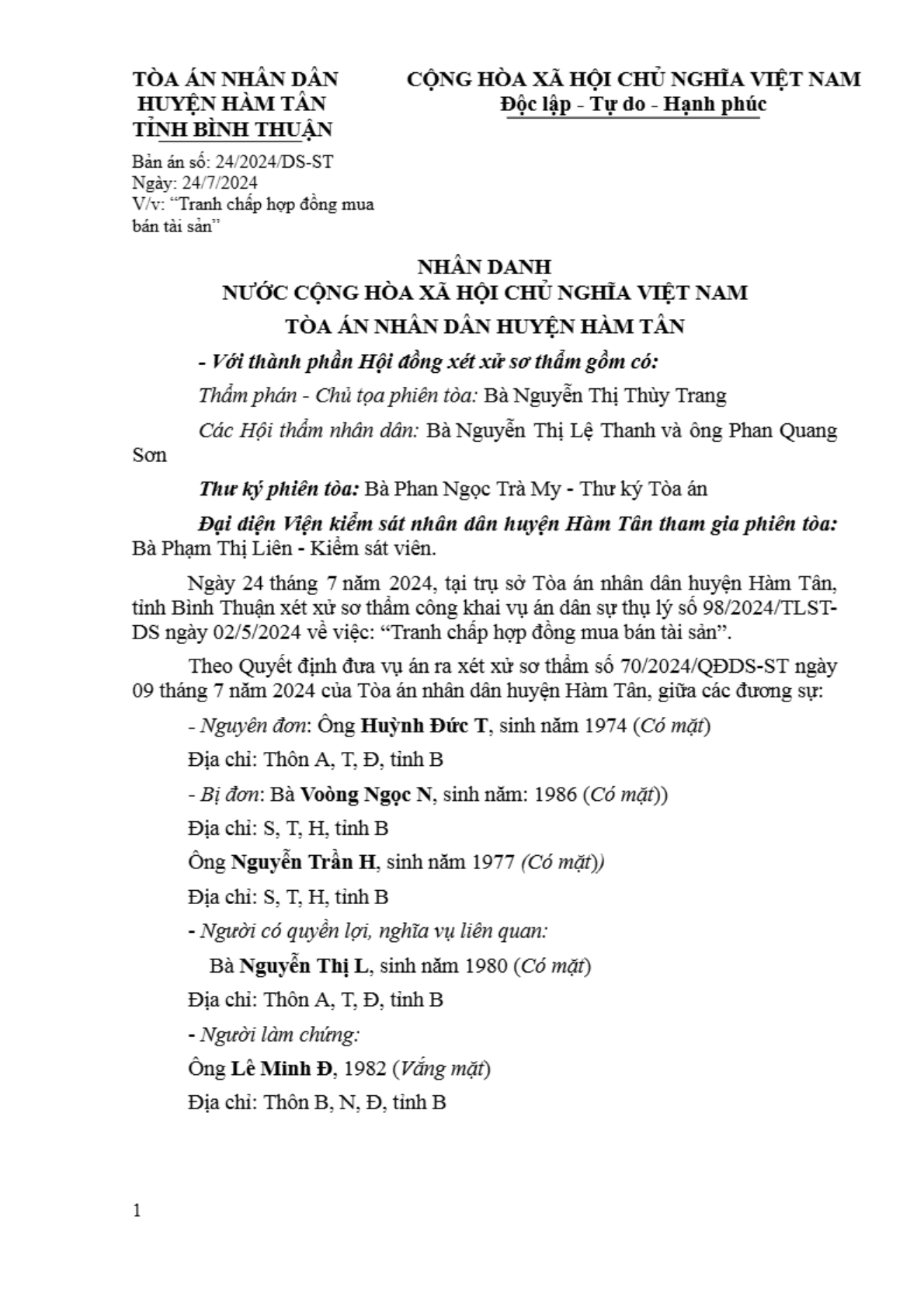 | Tòa án xét xử: | TAND huyện Hàm Tân (TAND tỉnh Bình Thuận) |