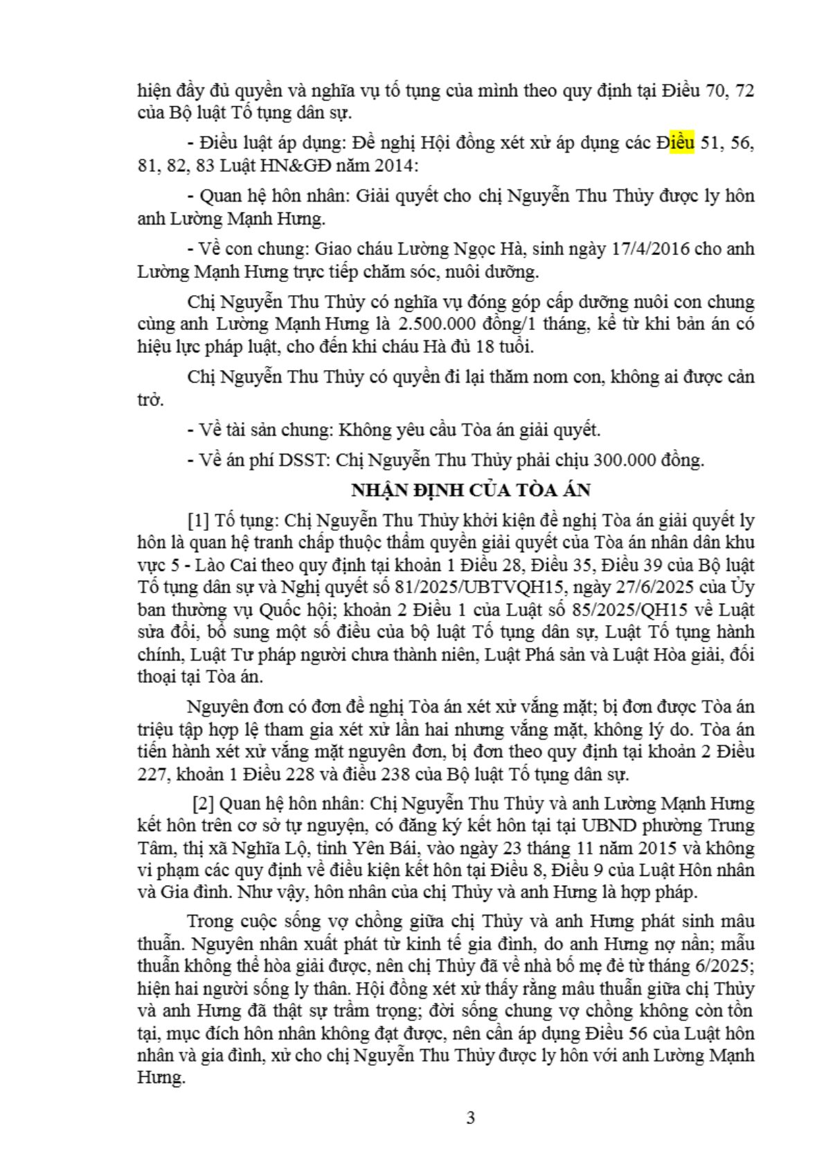 | Thông tin về vụ/việc: | Chị Nguyễn Thu T xin ly hôn anh Lường Mạnh H |