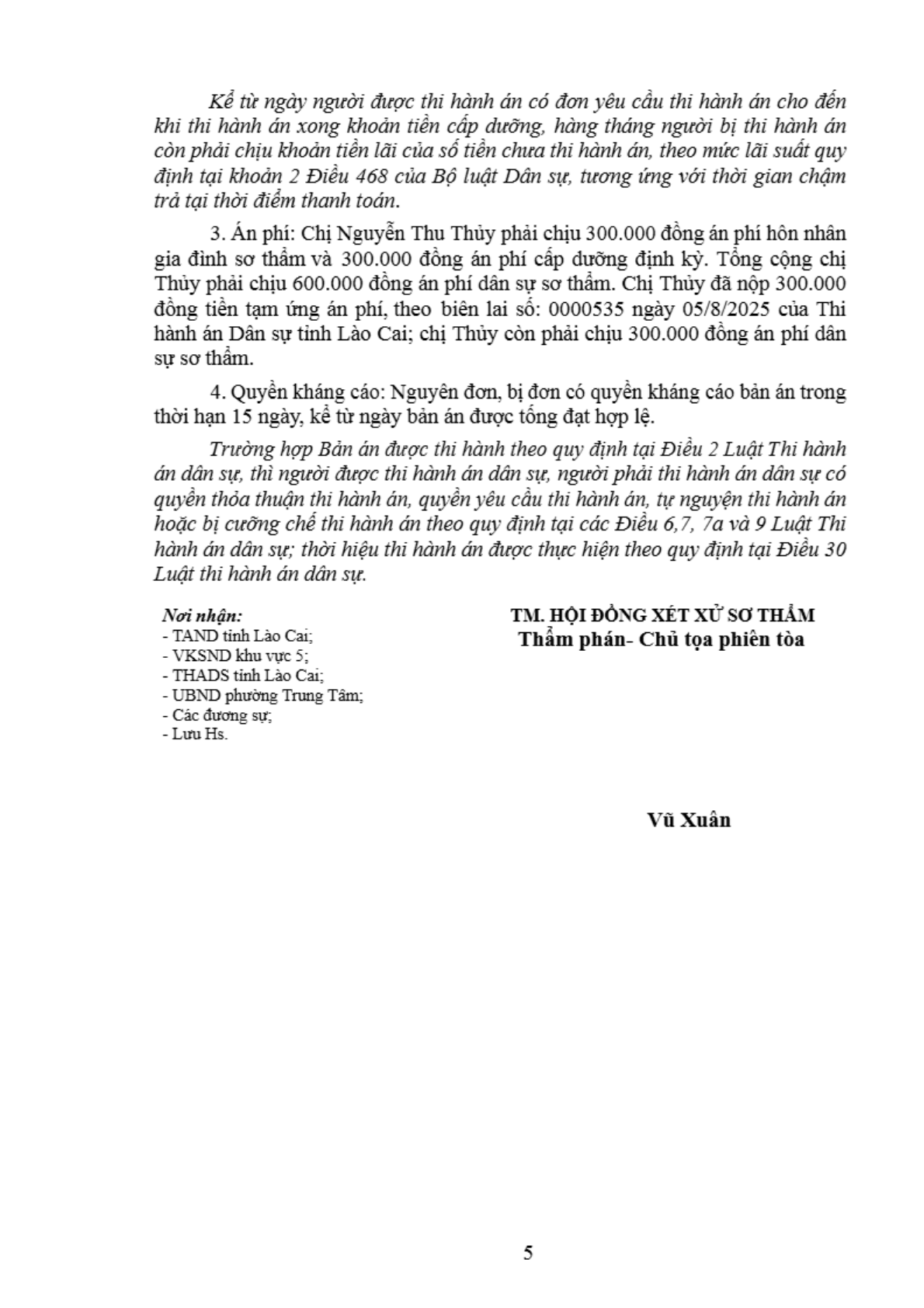| Tòa án xét xử: | Tòa án nhân dân khu vực 5 - Lào Cai, tỉnh Lào Cai |