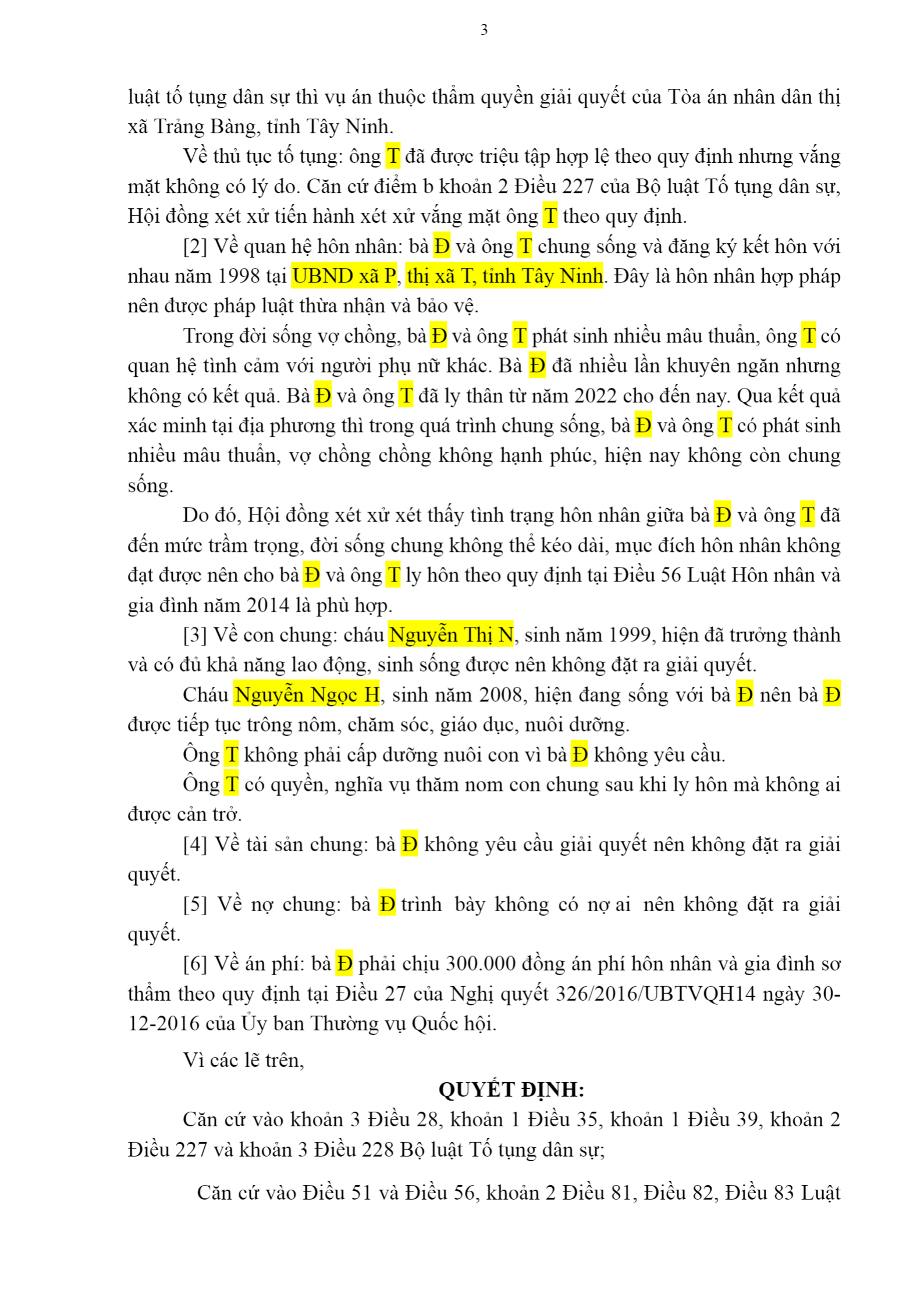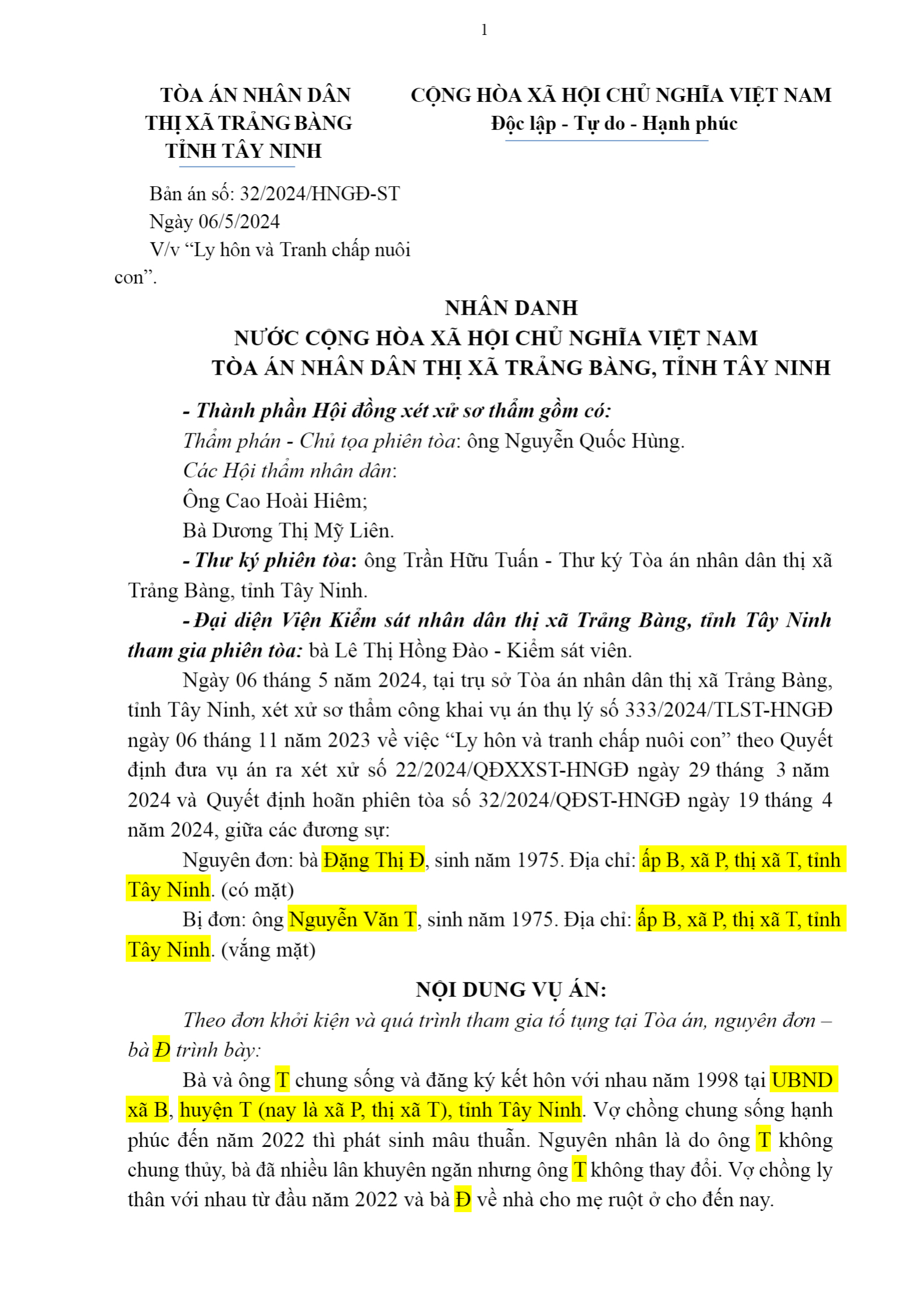 | Tòa án xét xử: | TAND huyện Dương Minh Châu (TAND tỉnh Tây Ninh) |