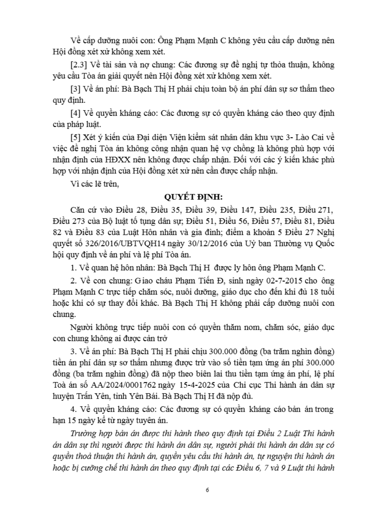| Thông tin về vụ/việc: | Chấp nhận yêu cầu khởi kiện |