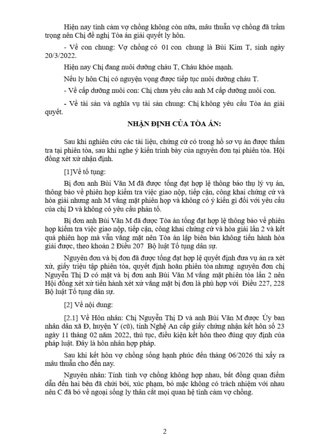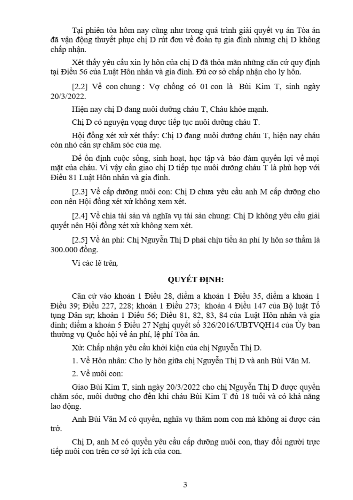 | Thông tin về vụ/việc: | Tranh chấp Hôn nhân gia đình DUNG - MẠNH |