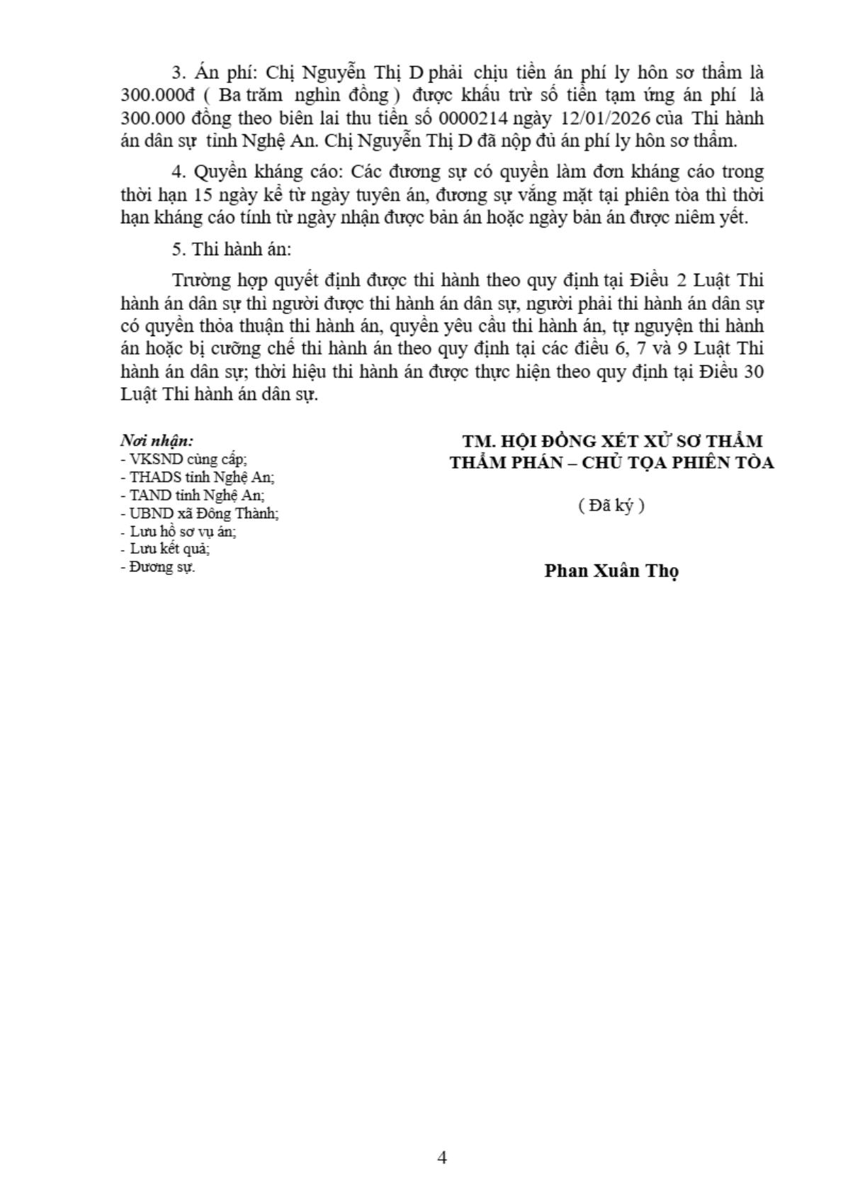 | Tòa án xét xử: | Tòa án nhân dân khu vực 6 - Nghệ An, tỉnh Nghệ An |