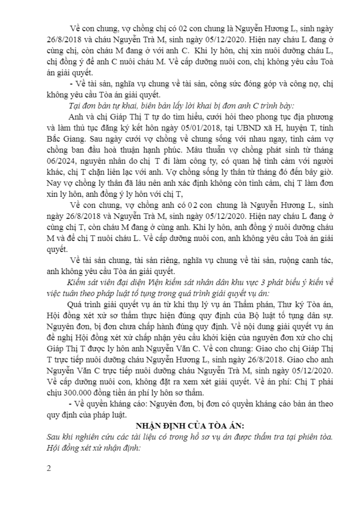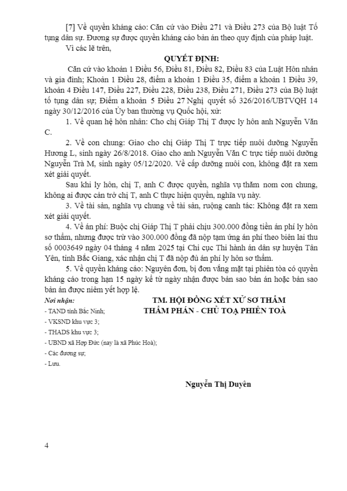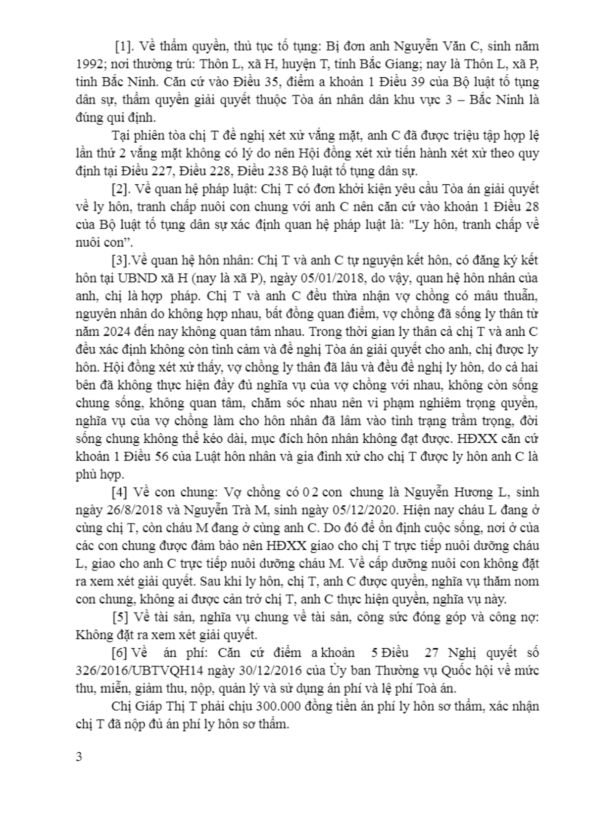 | Tòa án xét xử: | Tòa án nhân dân khu vực 3 - Bắc Ninh, tỉnh Bắc Ninh |