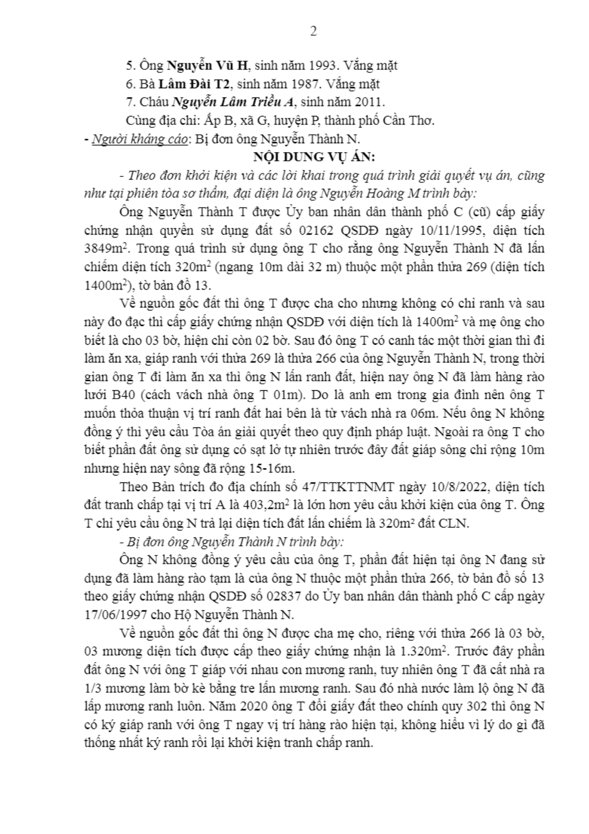 | Quan hệ pháp luật: | Tranh chấp đất đai |