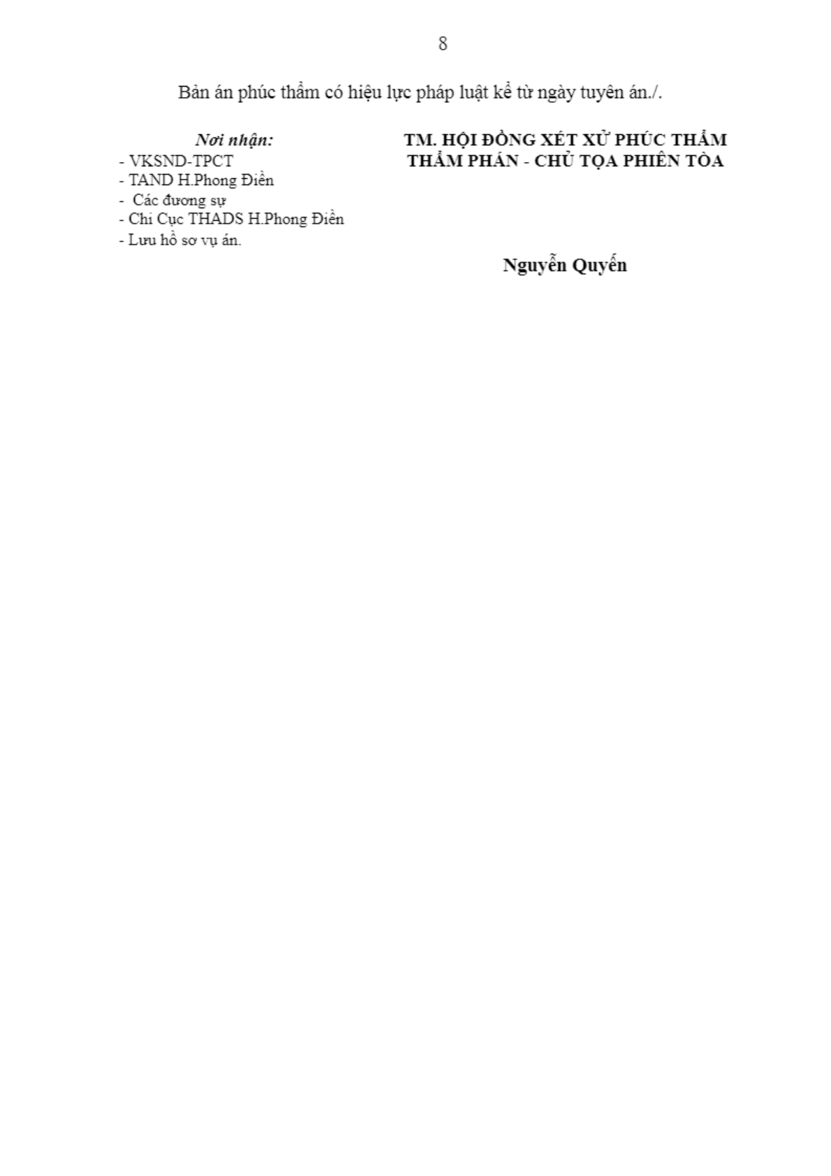 Cấp xét xử: Phúc thẩm