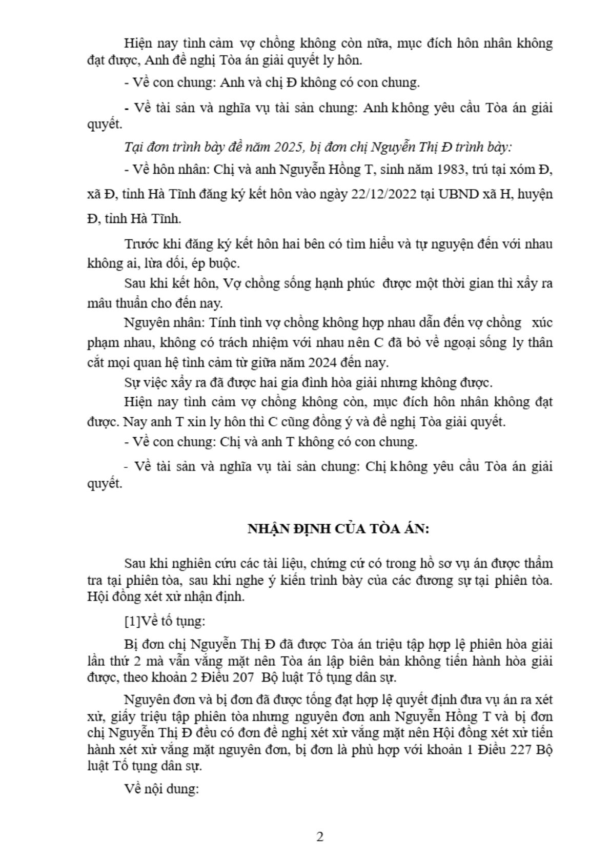 | Thông tin về vụ/việc: | bản án ly hôn Tăng - Đông |
