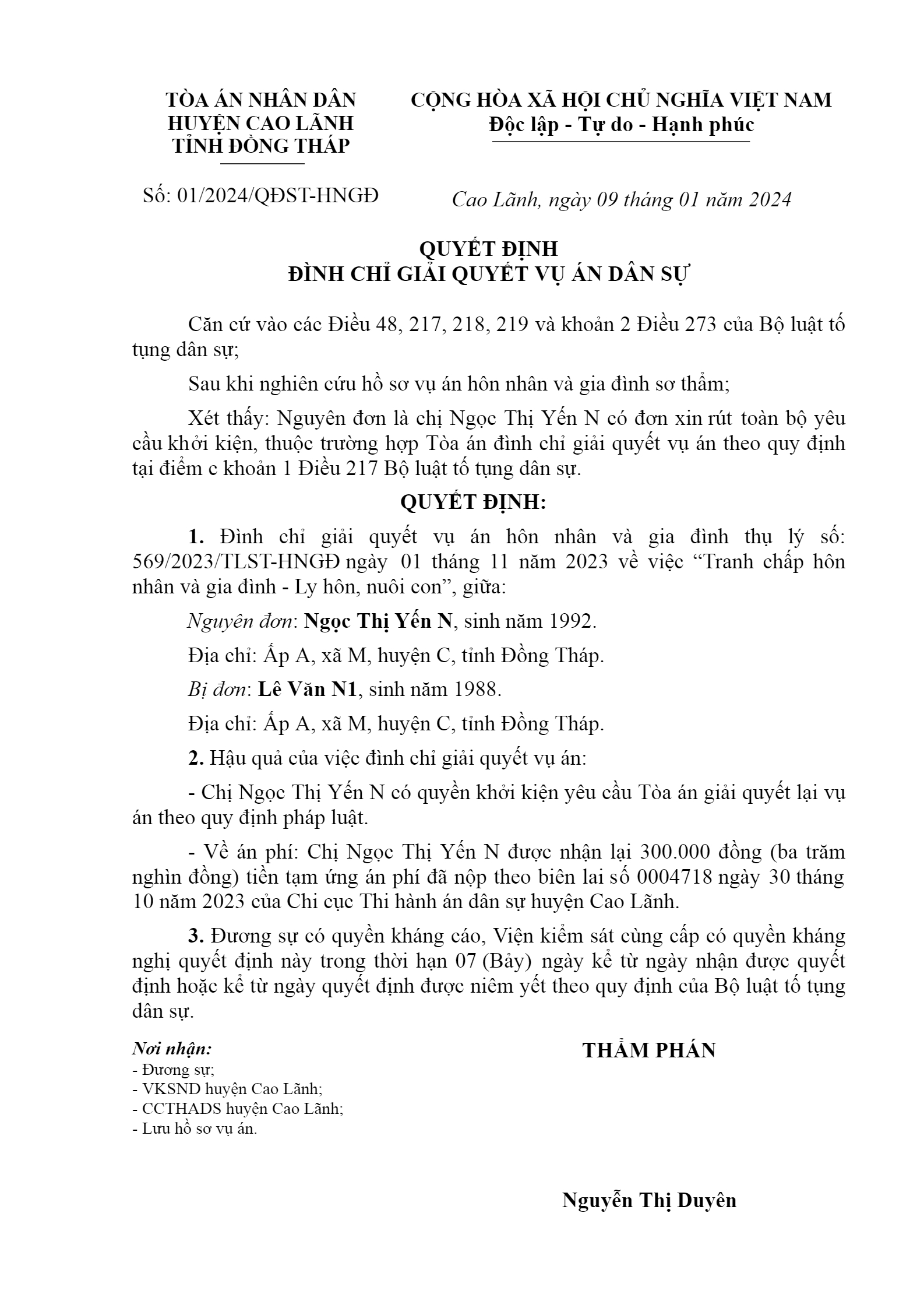 | Tòa án xét xử: | TAND huyện Cao Lãnh (TAND tỉnh Đồng Tháp) |