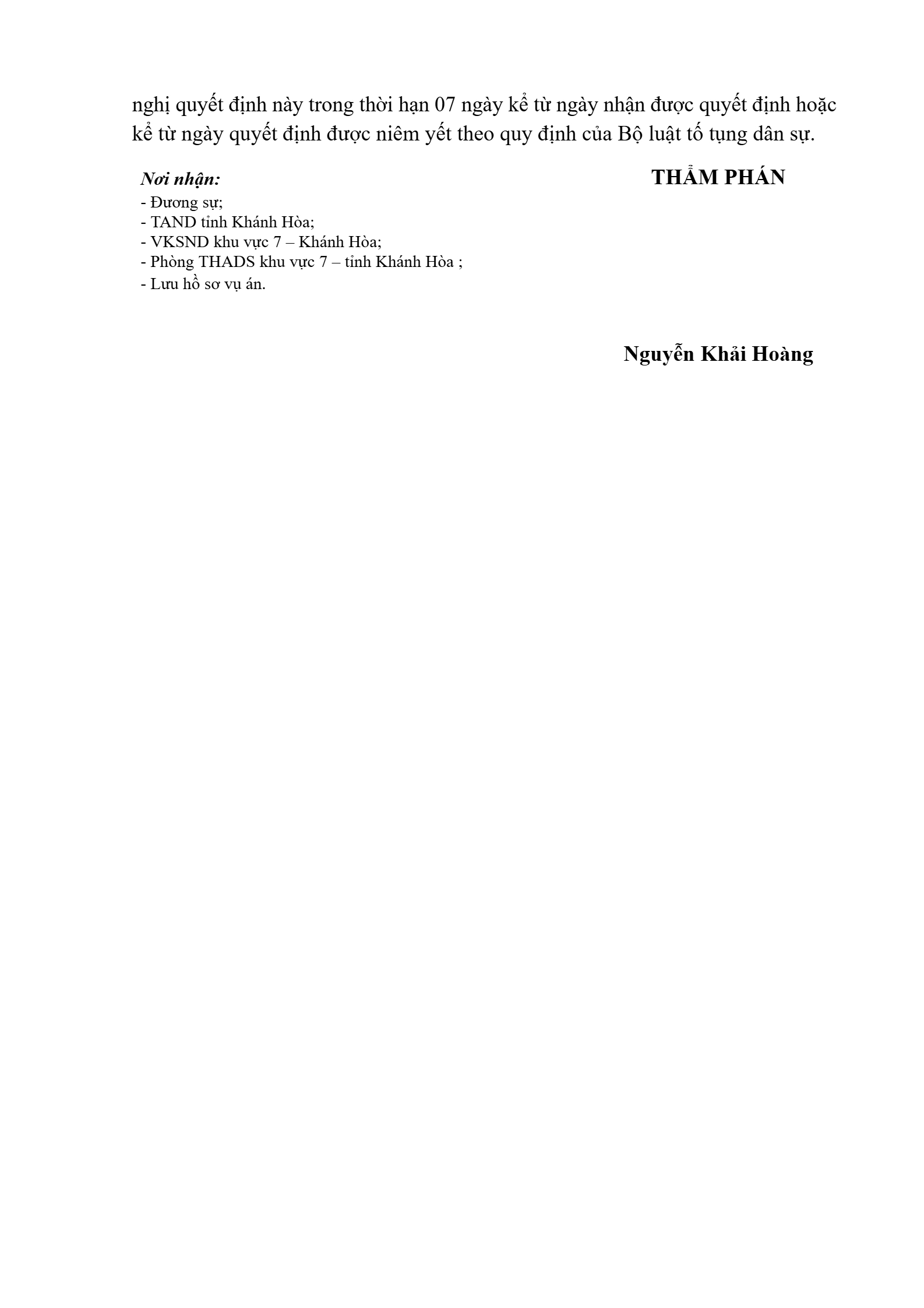 | Tòa án xét xử: | Tòa án nhân dân khu vực 7 - Khánh Hòa, tỉnh Khánh Hòa |