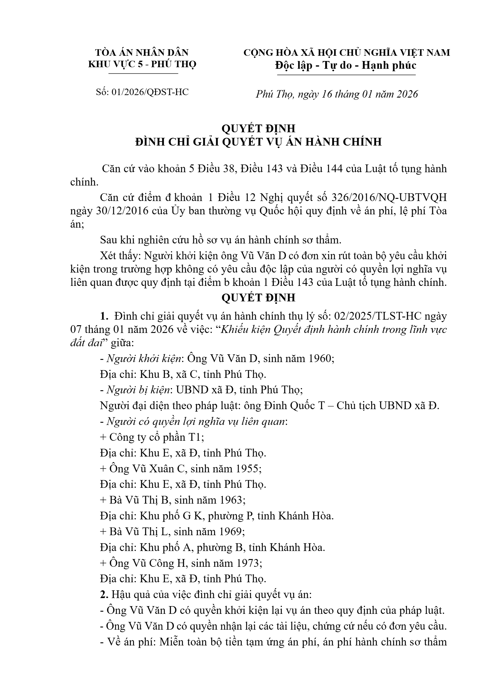 Quyết định số 01/2026/QĐST-HC